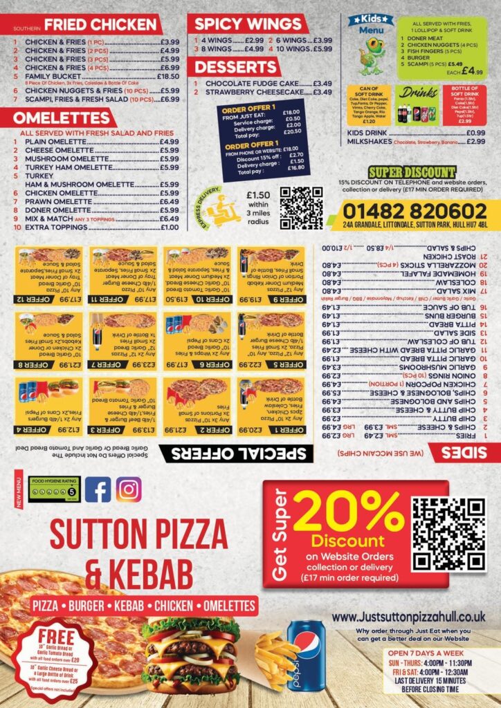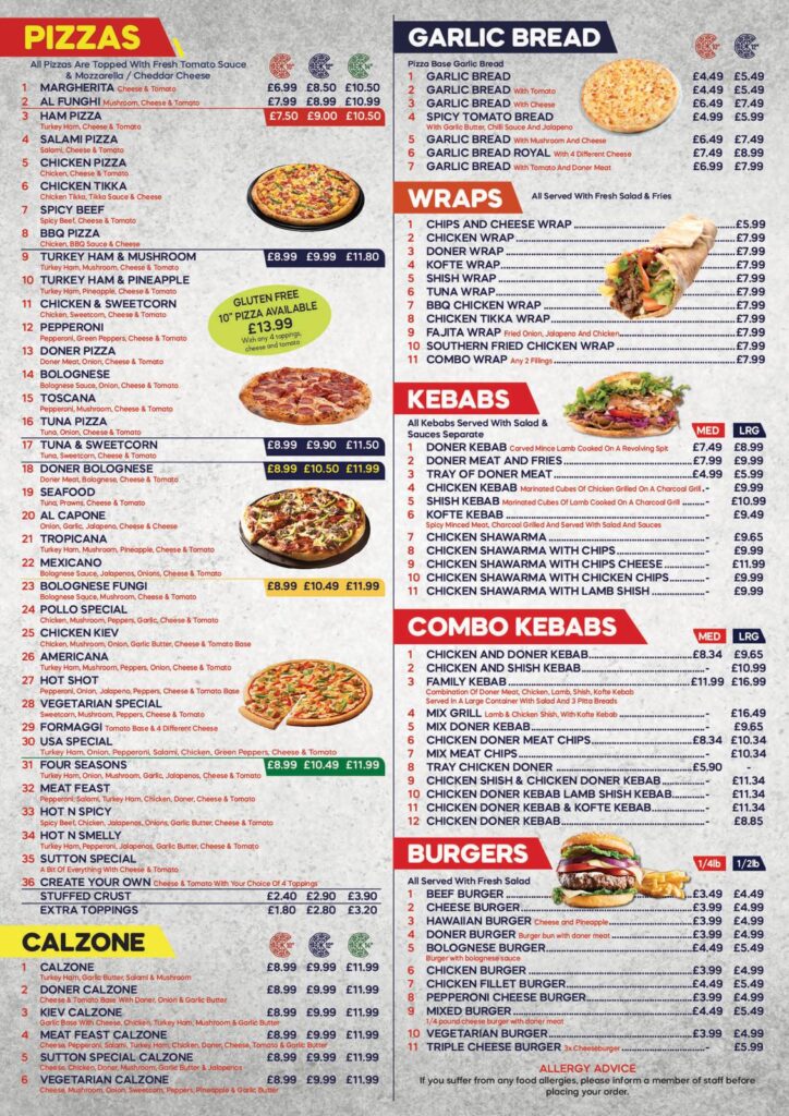 Sutton Pizza & Kebab Menu
